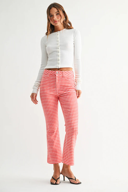 Embroidery Detailing Gingham Aladdin Pants