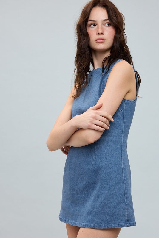 Casual Denim Boat Neck Inside Shorts Mini Dress