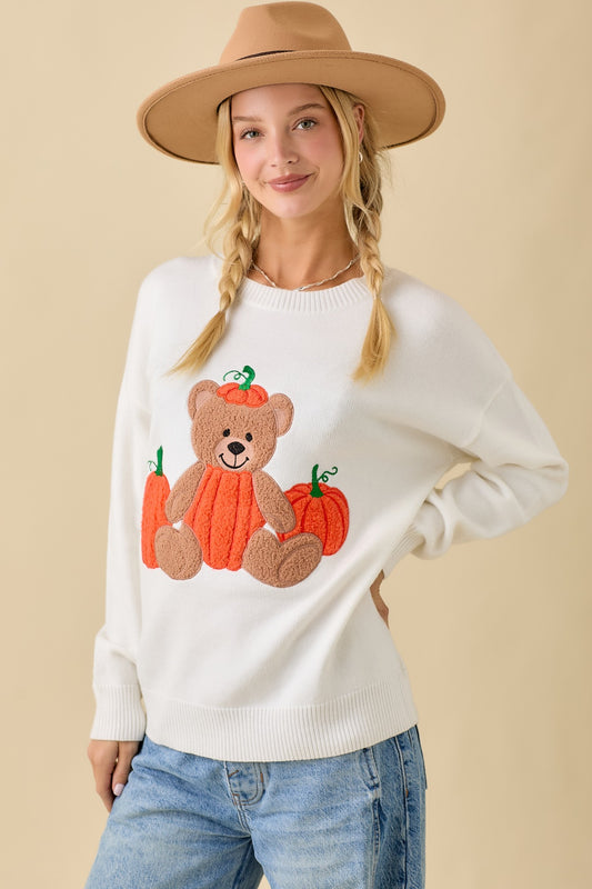 Pumpkin Teddy Bear Patchwork Sweater
