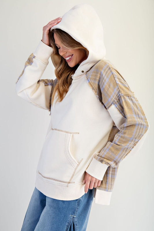 Plaid Mix Terry Pullover Hoodie
