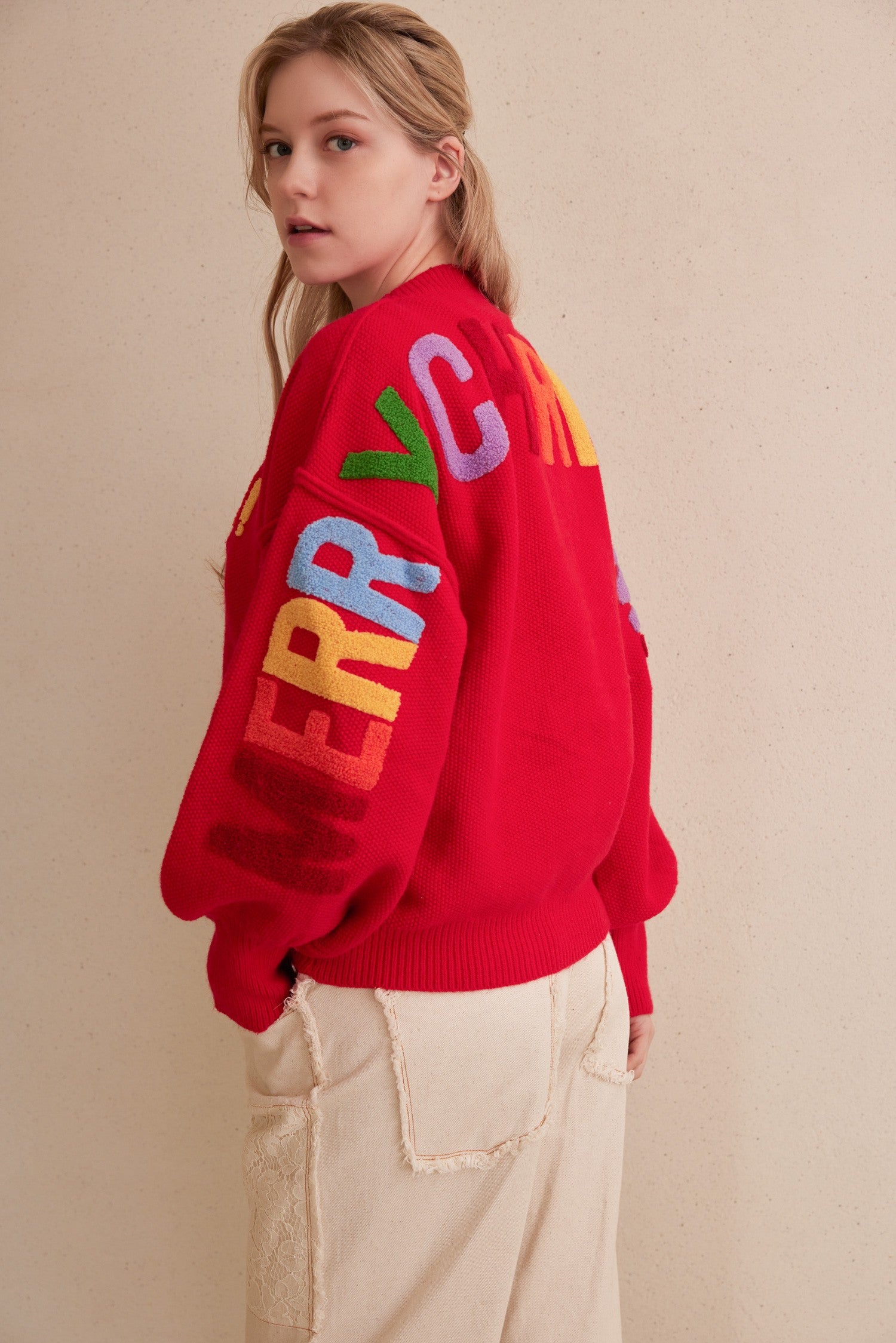 Stay cozy and stylish this holiday season with our Oversize Christmas Sweater featuring festive lettering. Designed for a relaxed fit, it offers ultimate comfort while making a bold seasonal statement. Crafted from soft, breathable fabric, this sweater keeps you warm without sacrificing style, perfect for holiday gatherings or casual winter days. Its oversized design ensures freedom of movement and a flattering silhouette for all body types. Elevate your festive wardrobe with this expert blend of comfort and holiday cheer.